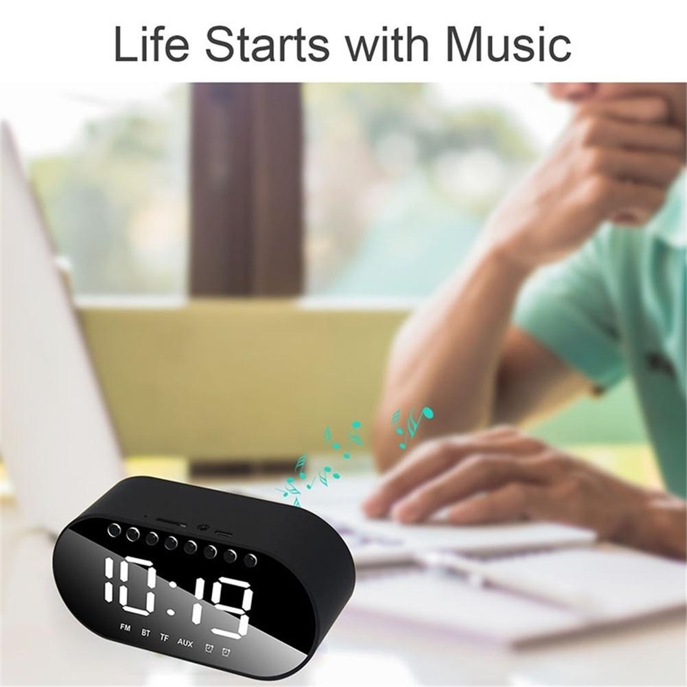 Tento sofistikovaný Digitální budík se zrcadlovým displejem nabízí mnohem více než pouhé zobrazení času. Díky vestavěnému Bluetooth se snadno připojíte s vaším telefonem nebo tabletem a můžete si tak bezdrátově streamovat oblíbenou hudbu. Máte rádi rádio? Integrovaný FM tuner je připraven. A pokud preferujete vlastní sbírku, slot na TF kartu a AUX vstup vám zajistí nekonečné možnosti přehrávání. Jasný LED displej je viditelný i z dálky a jeho zrcadlový povrch je praktický pro rychlé ranní kontroly. K dispozici je v několika atraktivních barvách – červené, bílé, modré a černé – takže si snadno vyberete ten, který nejlépe doplní váš interiér. Je to dokonalá kombinace funkčnosti a stylu!