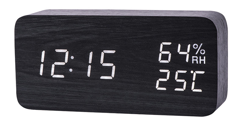 Naše Dřevěné digitální hodiny s teploměrem budík nejsou jen obyčejným ukazatelem času. Je to chytrý společník, který se stará o vaše pohodlí a styl. Díky integrovanému teploměru a vlhkoměru budete mít vždy přehled o mikroklimatu vašeho domova, což vám umožní lépe optimalizovat prostředí pro zdravější a příjemnější život. Mějte pod kontrolou teplotu ve stupních Celsia a relativní vlhkost vzduchu, zatímco vás spolehlivý budík s funkcí snooze jemně probudí do nového dne. Jeho teplý, přírodní vzhled dřeva dodá každé místnosti útulnou a moderní atmosféru.