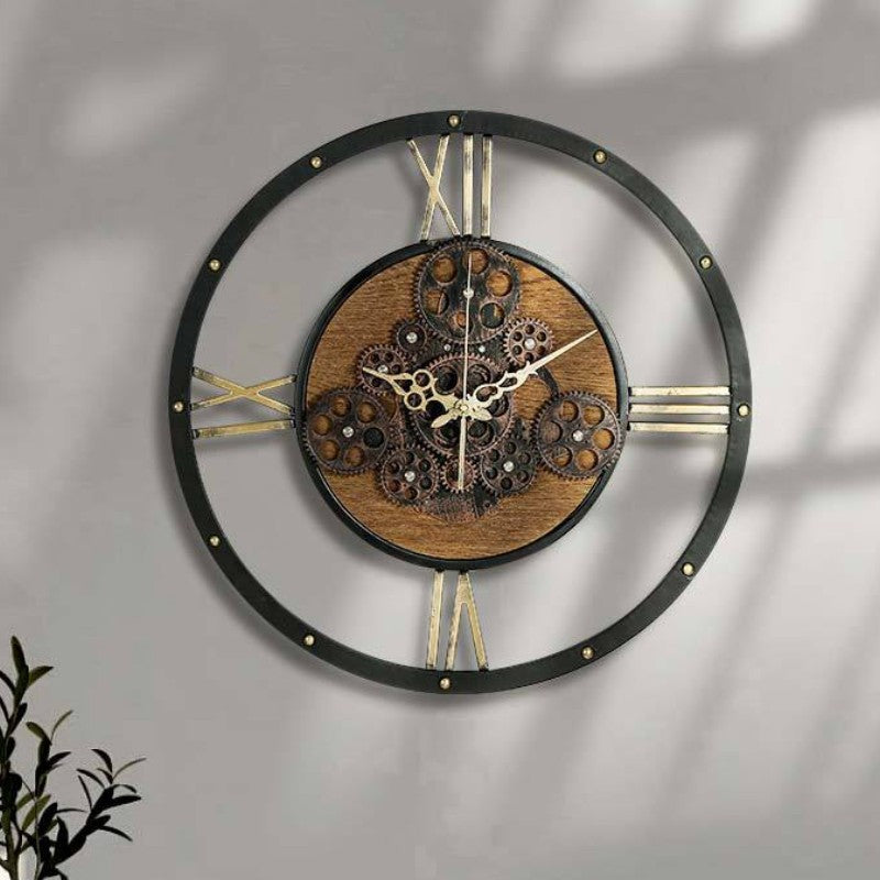 Tyto hodiny nejsou jen praktickým nástrojem pro měření času, ale především fascinující dekorací, která vypráví příběh. Jejich odvážný design s obnaženými, funkčními ozubenými koly evokuje kouzlo starých strojů a steampunkové éry, zatímco elegantní římské číslice na masivním dřevěném pozadí dodávají celku nadčasovou eleganci. Každý detail byl pečlivě promyšlen, od pevného kovového rámu až po složitě propracované ozubené mechanismy, které se rytmicky pohybují a vnášejí do prostoru pocit života a neustálého dění. Nejde jen o to vědět, kolik je hodin, ale o to užít si vizuální podívanou, která vás přenese do jiné doby a zároveň perfektně zapadne do moderního životního stylu.