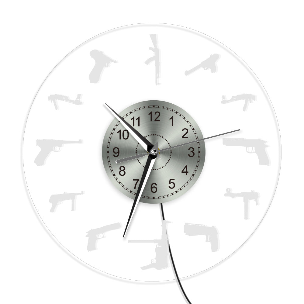 Osvětlete svůj prostor s našimi jedinečnými Nástěnnými LED hodinami s motivem zbraní