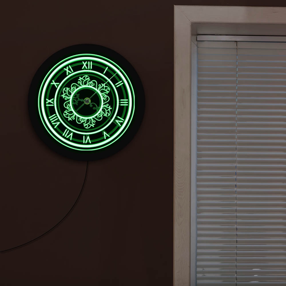Představte si, jak se váš obývací pokoj, ložnice nebo kancelář promění s těmito úchvatnými retro nástěnnými hodinami s LED osvětlením. Už vás nebaví nudné a obyčejné hodiny? Hledáte něco, co skutečně upoutá pozornost a dodá vašemu prostoru nádech elegance a moderní sofistikovanosti? Tyto hodiny nejsou jen ukazatelem času, jsou uměleckým dílem, které kombinuje klasický šarm římských číslic s hypnotizujícím neonovým leskem. Vytvořte atmosféru, která vás přenese do jiné éry, a zároveň si užívejte praktické a energeticky úsporné LED osvětlení, které dodá každé místnosti nezaměnitelný charakter. Ideální pro ty, kteří milují design, detail a chtějí, aby jejich domov vyprávěl příběh.