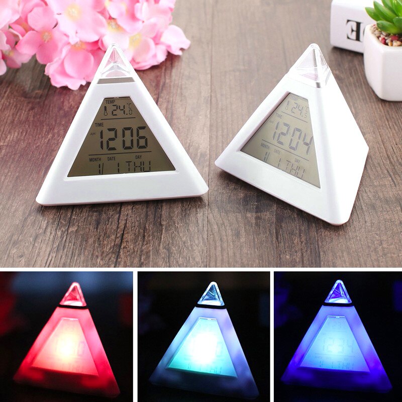 Odstartujte svůj den s elegancí: Světelný budík pyramida měnící barvy