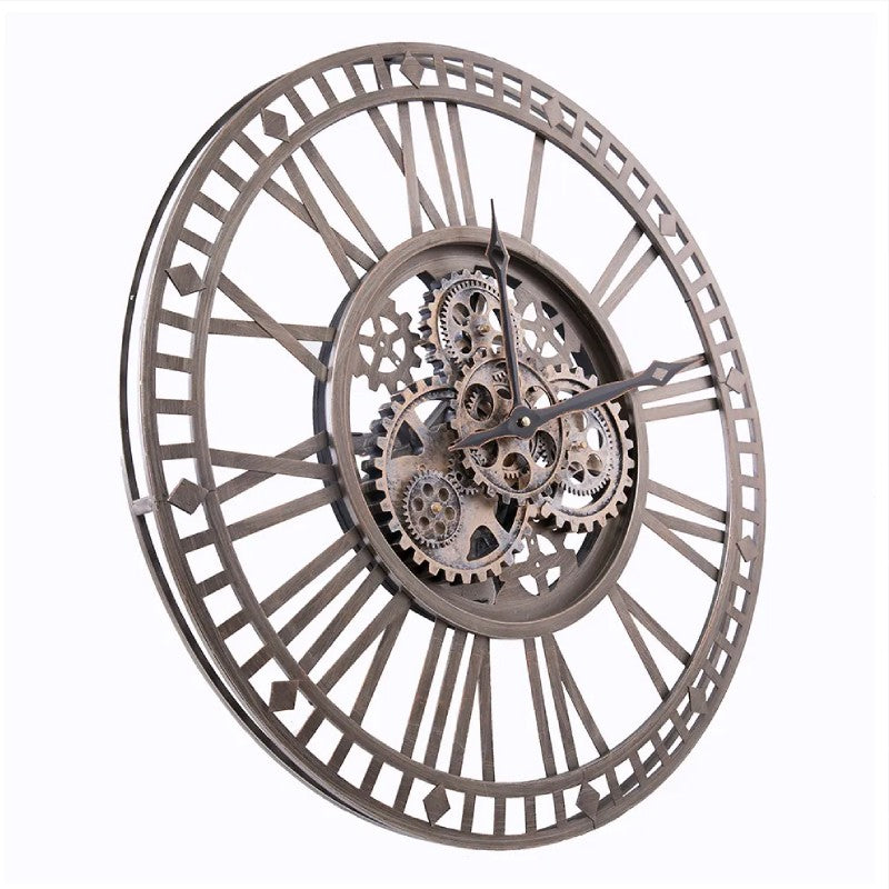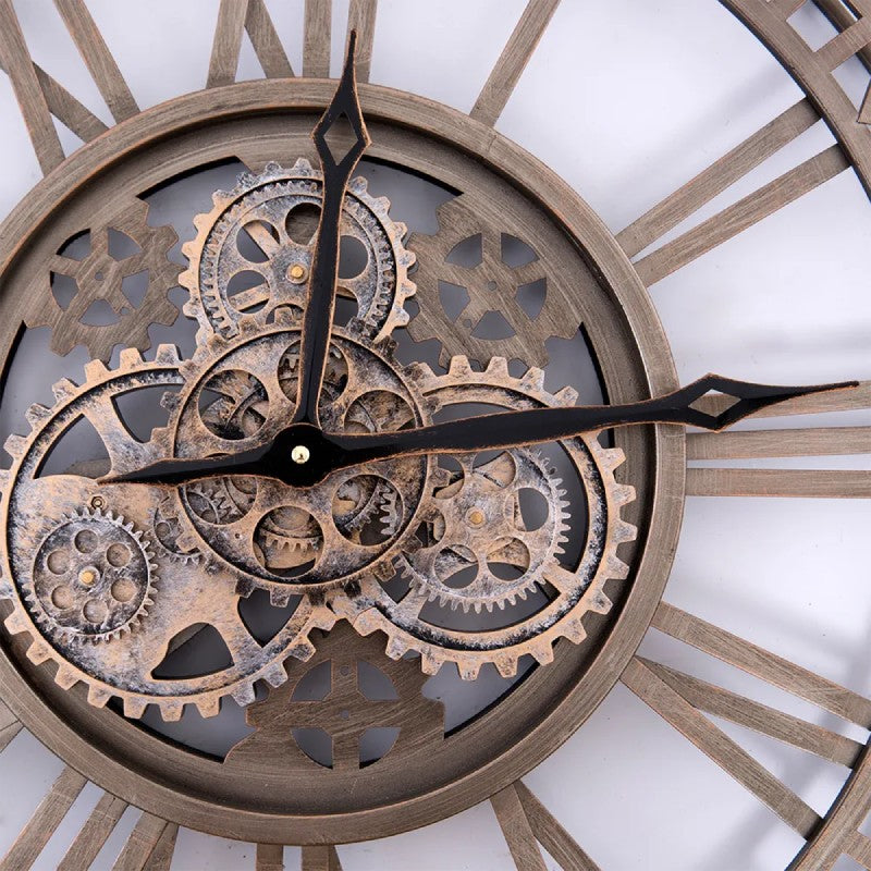 Tyto hodiny nejsou jen velké – jsou impozantní! S jejich robustním vzhledem a detailním zpracováním se stanou centrálním bodem každé místnosti. Každý pohled na ně odhalí precizně zpracované detaily a patinovaný povrch, který evokuje staré tovární hodiny nebo stroje z viktoriánské éry. Avšak to, co je skutečně odlišuje, je plně funkční a viditelný převodový mechanismus. Zážitek z pozorování pomalého a rytmického pohybu ozubených kol je nejen uklidňující, ale i nesmírně poutavý. Je to více než jen hodiny; je to konverzace, kousek historie a nepřehlédnutelný prvek, který vaší stěně dodá hloubku a charakter.